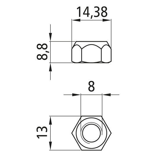 Sexkantsmutter med klämdel, självlåsande, förzinkad, M8, fast 8