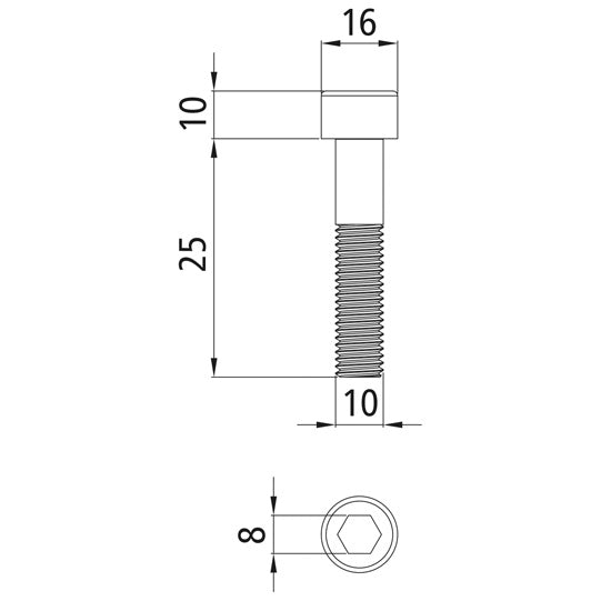 Sexkantsskruv, galvaniserat stål, M10 x 25 - 8.8, DIN 912/ISO 4762