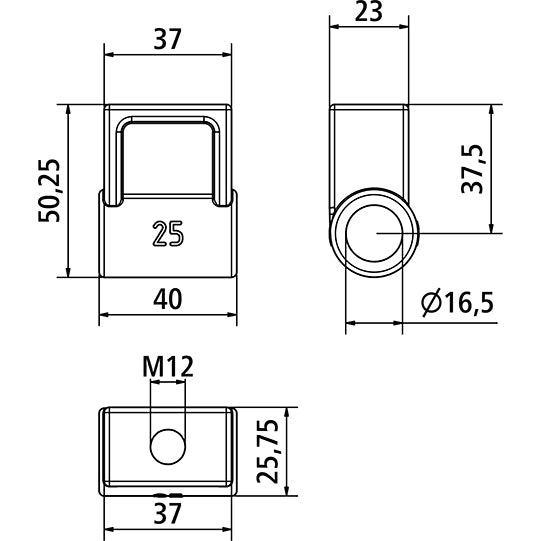 Övre gångjärnsdel 6551, galvaniserad, med M12 dragstångshål