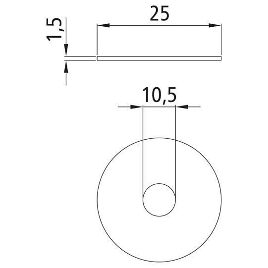 Stänkskyddsbricka, galvaniserad, slipad, färglös passiverad, 10,5 x 25 x 1,5 mm, tolerans enligt DIN 522 C - förpackning 200 delar -