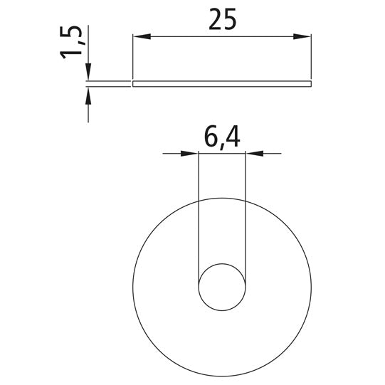 Stänkskyddsbricka, galvaniserad, slipad, färglös passiverad, 6,4 x 25 x 1,5 mm, tolerans enligt DIN 522 C - förpackning 200 delar -