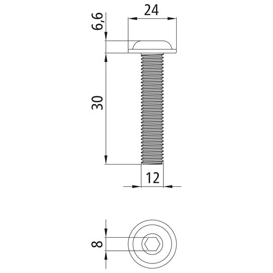 Konisk skruv med fläns, M 12 x 30, invändig sexkant, hållfasthetsklass 10.9, förzinkat stål, liknande ISO 7380