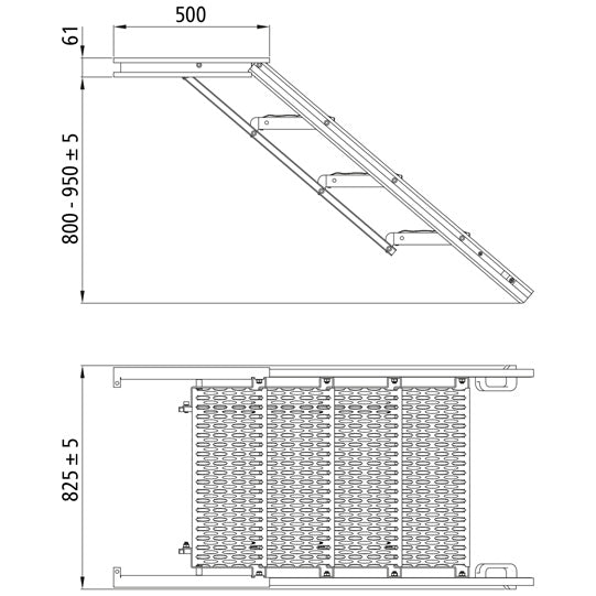 PWP utdragbar trappa, 5 steg, aluminium, delvis anodiserad, längd 1892 mm, bredd 825 mm, utan underram, 4 010 611