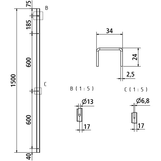 Bakre stolpförstärkning för SSPL-CS Light, zink-aluminium-magnesiumbelagd