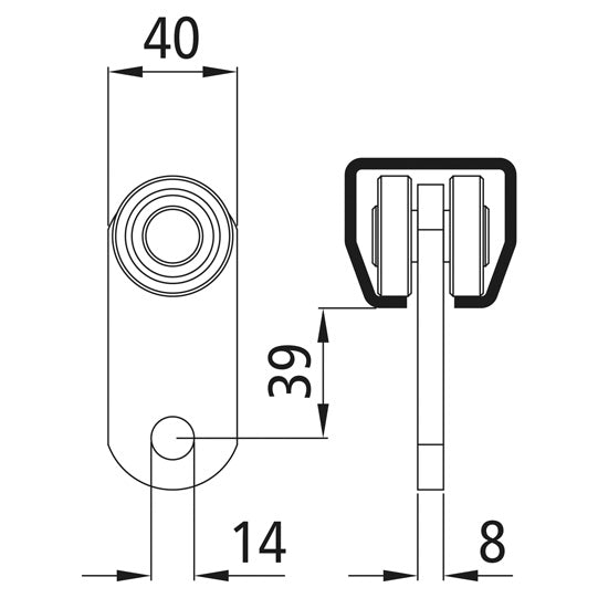 Hjul för profil 400/typ 24, galvaniserat stål, enkelpar, med hål för montering