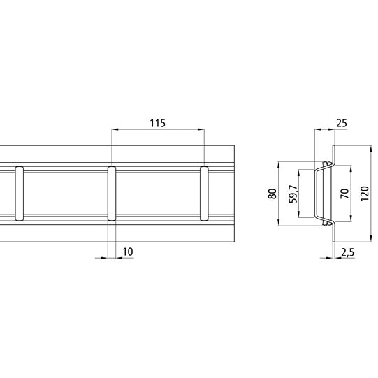 S-Line® stångförankringsskena 3116-AL, anodiserad aluminium, För horisontellt väggmontering för infällning, längd 6400 mm, kompatibel med alla bandtyper upp till 50 mm