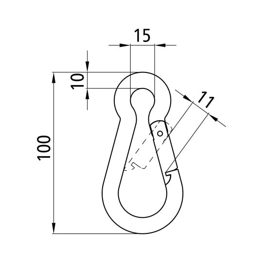 Karbinhake, stål, galvaniserad, längd: 100 mm, material-Ø: 10 mm, DIN 5299, form C, PU 25 delar