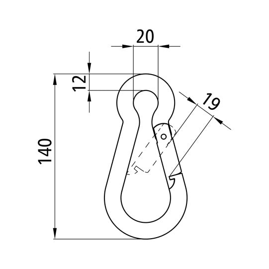 Karbinhake, stål, galvaniserad, längd: 140 mm, material-Ø: 12 mm, DIN 5299, form C
