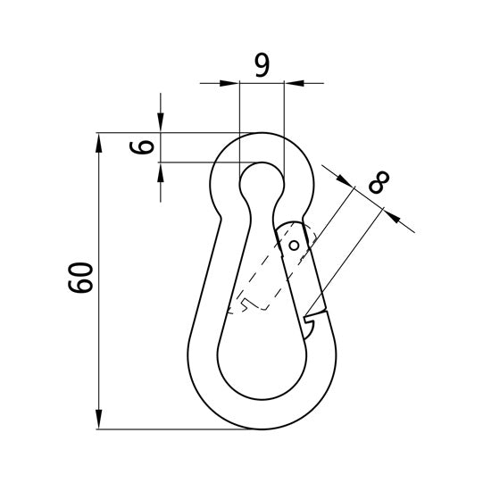 Karbinhake, stål, galvaniserad, längd: 60 mm, material-Ø: 6 mm, DIN 5299, form C