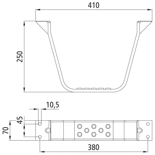 Stegfäste, galvaniserat stål, höjd 250 mm, stegyta ca 175 x 70 mm