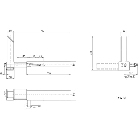 Stopp för växelflak ASW 160, 410.147.000, justerbar