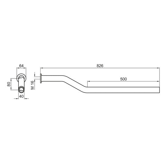 Stödrör 40 x 4 x 800 mm, böjt, grundmålat