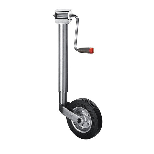 Stödhjul LC 242, 200 x 50 mm massivt gummihjul, stålplåtsfälg, med sidovev, 48 mm rör-Ø, förzinkad, 220 mm spindelslaglängd (150 kg tillåten statisk belastningskapacitet)
