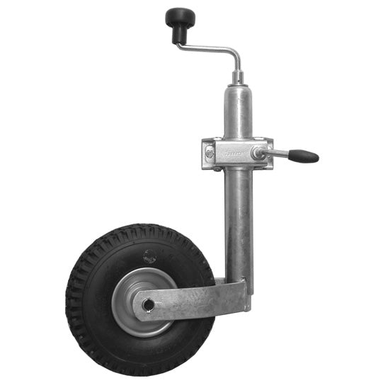 Stödhjul ST 48 / F / 260 LB, luftfyllda däck på plåtfälg, med axiallager, ytterrör Ø 48 x 2,3 mm, rörlängd 370 mm, totalhöjd 625 mm, maximal belastning vid stillastående 150 kg, förzinkat,