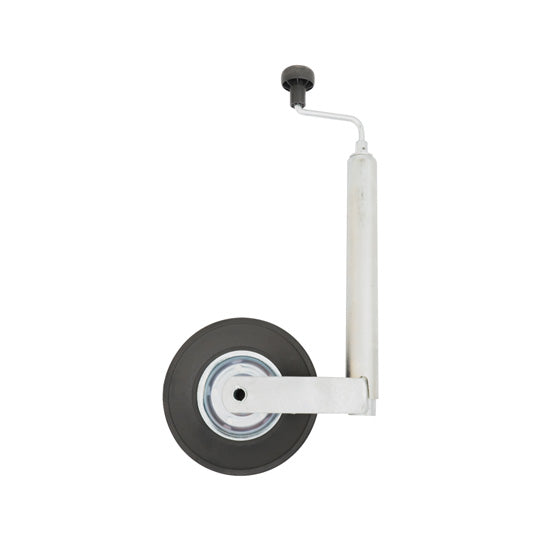 Stödhjul ST 48 / V / 255 SB, massiva gummidäck på plåtfälg, förstärkt utförande, med axiallager, ytterrör Ø 48 x 3,5 mm, rörlängd 370 mm, totalhöjd 625 mm, maximal belastning vid stillastående 200 kg, förzinkat,