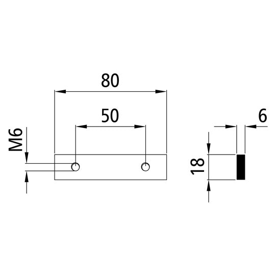 Gängplåt, galvaniserad, hålavstånd 50 mm, längd 80 mm, med M6 gängat hål