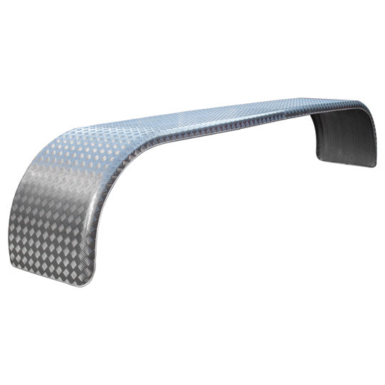 Treaxlad stänkskärmD ALQ46410 (rund form), schackrutplåt i aluminium 2,5/4 mm, svetsat kantskydd på tre sidor, 460 × 4900 × 680 × 650 × 4100 mm (b × l × h × b × s)