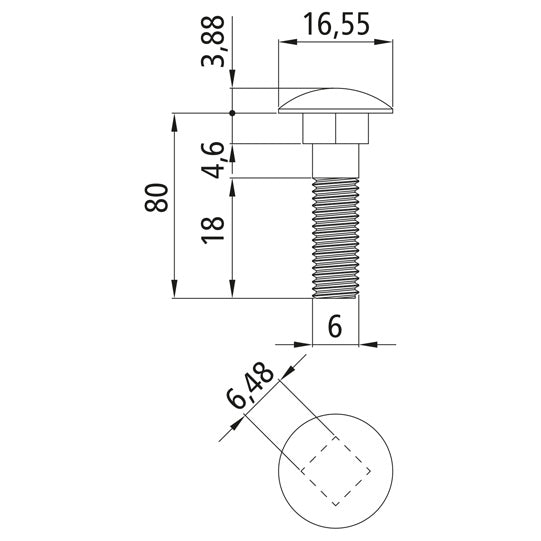 Spetsbult med fyrkantig hals, elförzinkad, M6 x 80, DIN 603, 4.6, med sexkantsmutter
