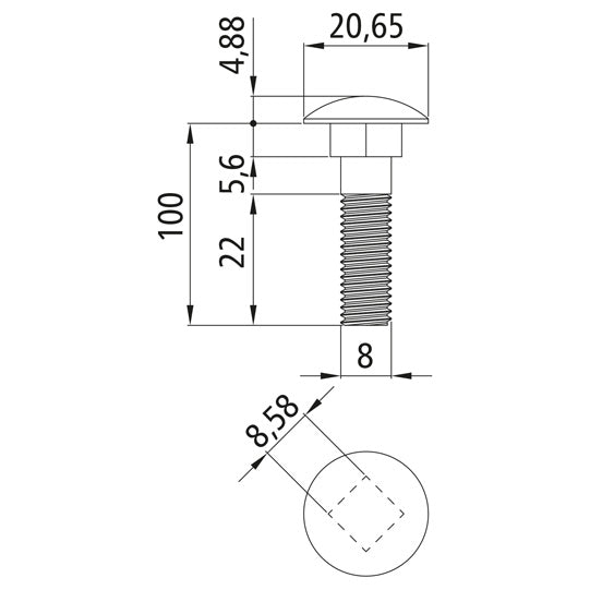 Bult med bärlager, förzinkad, M8 x 100, sexkantsmutter
